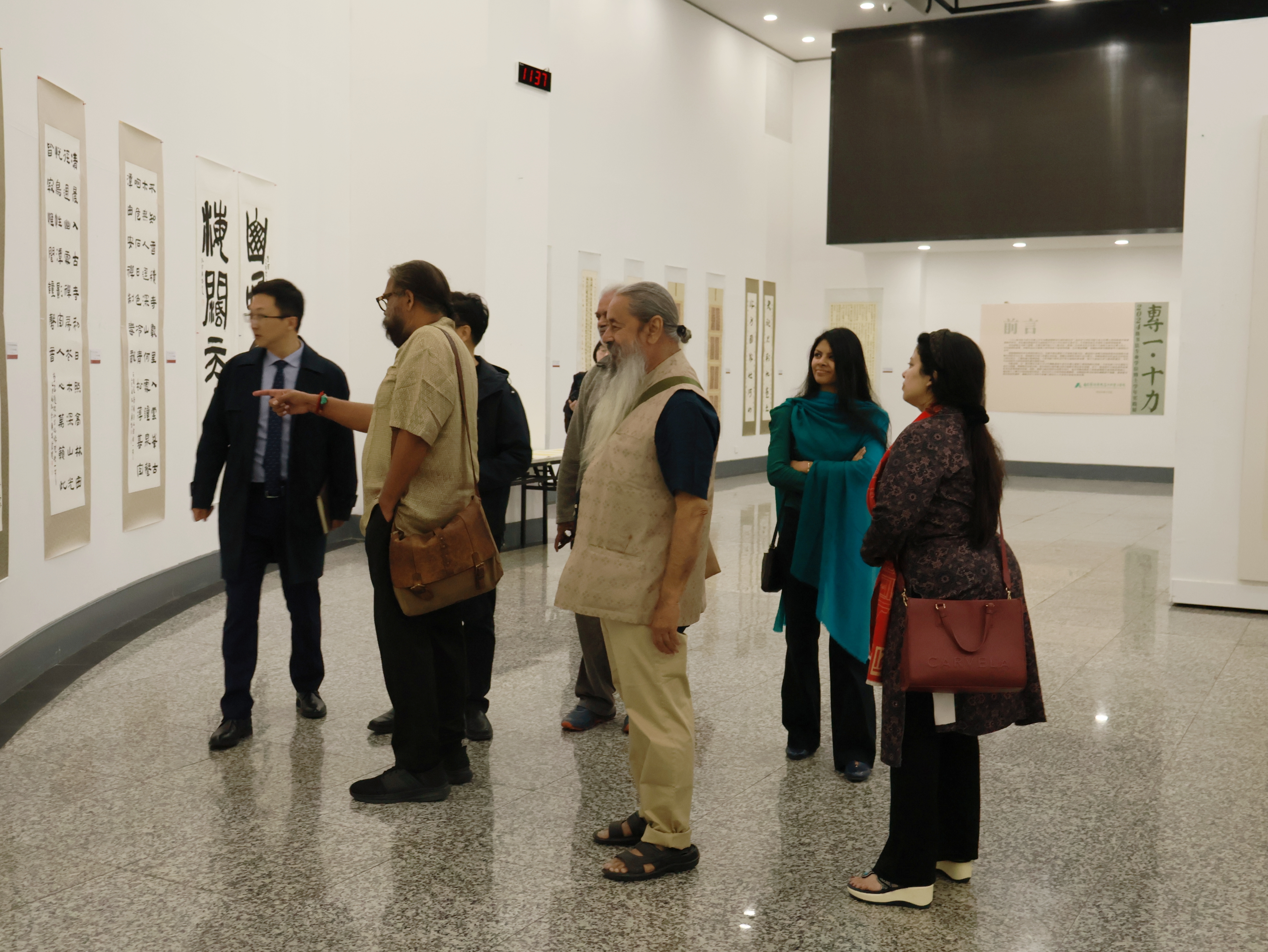On November 4, a delegation from India's cultural sector visited Nanjing University of the Arts (NUA). NUA Party Secretary Yu Feng received the delegation in the VIP reception room of the Administration Building, accompanied by NUA senior leaders including Zhang Jie,Vice President and Member of the Standing Committee of the NUA Party Committee, and LiZhipeng, Director of the Integrated Office of Party Committee and University Administration, Head of the Publicity Department, and also a Member of the Standing Committee of the NUA Party Committee. Responsible officials from the Office of International Exchange, the School of Drama, Film, & Television, and the School of Dance also joined the meeting. The two sides exchanged views on cooperation in arts education. The Indian delegation put forward multiple proposals for collaboration, including student exchange programs and jointly organized academic symposia. Following the talks, they toured the School of Fine Arts and Calligraphy and the School of Drama, Film, & Television. The visit yielded substantial outcomes, including a cooperation intent in the fields of folk craft preservation and digital art creation, and a plan to co-host the "China-India Visual Arts Biennale" in 2026.
